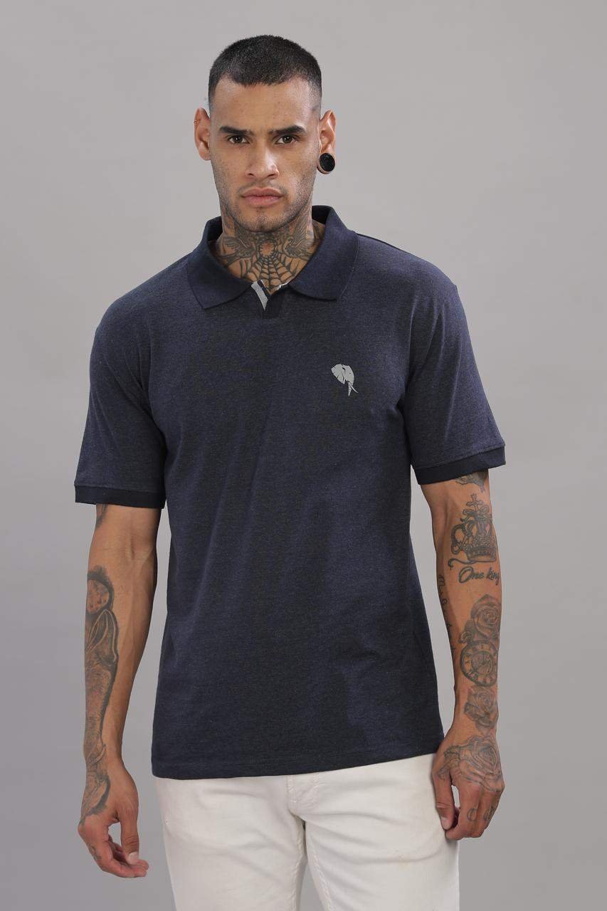 PR35 || Navy Melange || 100% Cotton Polo T-Shirt
